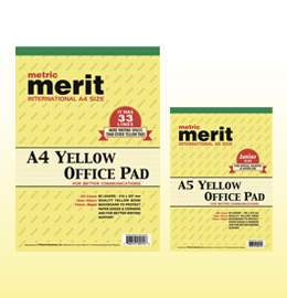 Item No. Description Size Case Pack 02014 A4 Yellow Office Pad 80 lvs. 210mm X 297mm 100 02015 A5 Yellow Office Pad 50 lvs. 148mm X 200mm 100