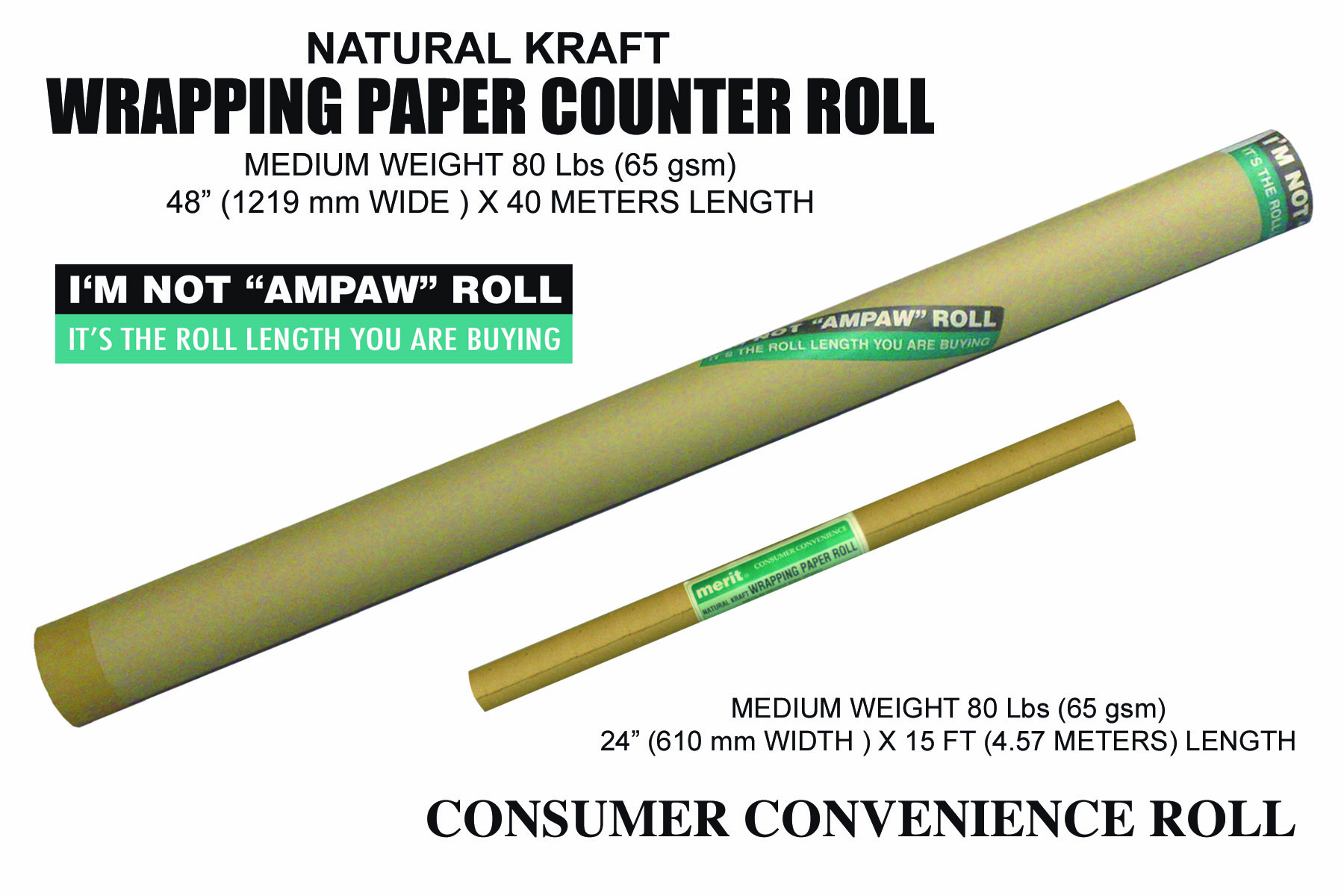 03408            Natural Kraft Wrapping Paper               48" x 40 meters            1